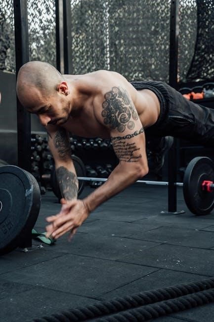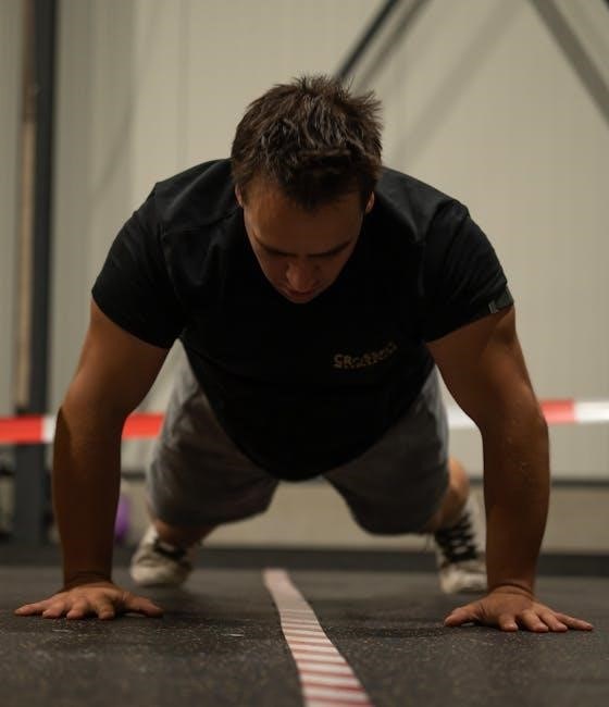 Plyometric push-ups‚ with variations like clapping push-ups‚ are also included‚ demanding a quick‚ explosive extension․ Proper technique‚ as demonstrated in the PDF‚ is paramount to prevent injury․ The program emphasizes controlled landings and a focus on maximizing power output with each repetition․ Weight of the medicine ball can vary between 5-10lbs․