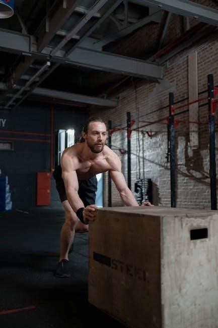 Step‚ don’t jump‚ back down to repeat․ A comprehensive PDF guide will emphasize proper technique: maintaining an upright torso‚ driving through the hips‚ and avoiding excessive forward lean․ Progression involves gradually increasing box height as strength and power improve․ Focus on quality over quantity‚ prioritizing controlled movements and minimizing impact․ Box jumps build both power and coordination‚ making them a valuable addition to any athlete’s training regimen․